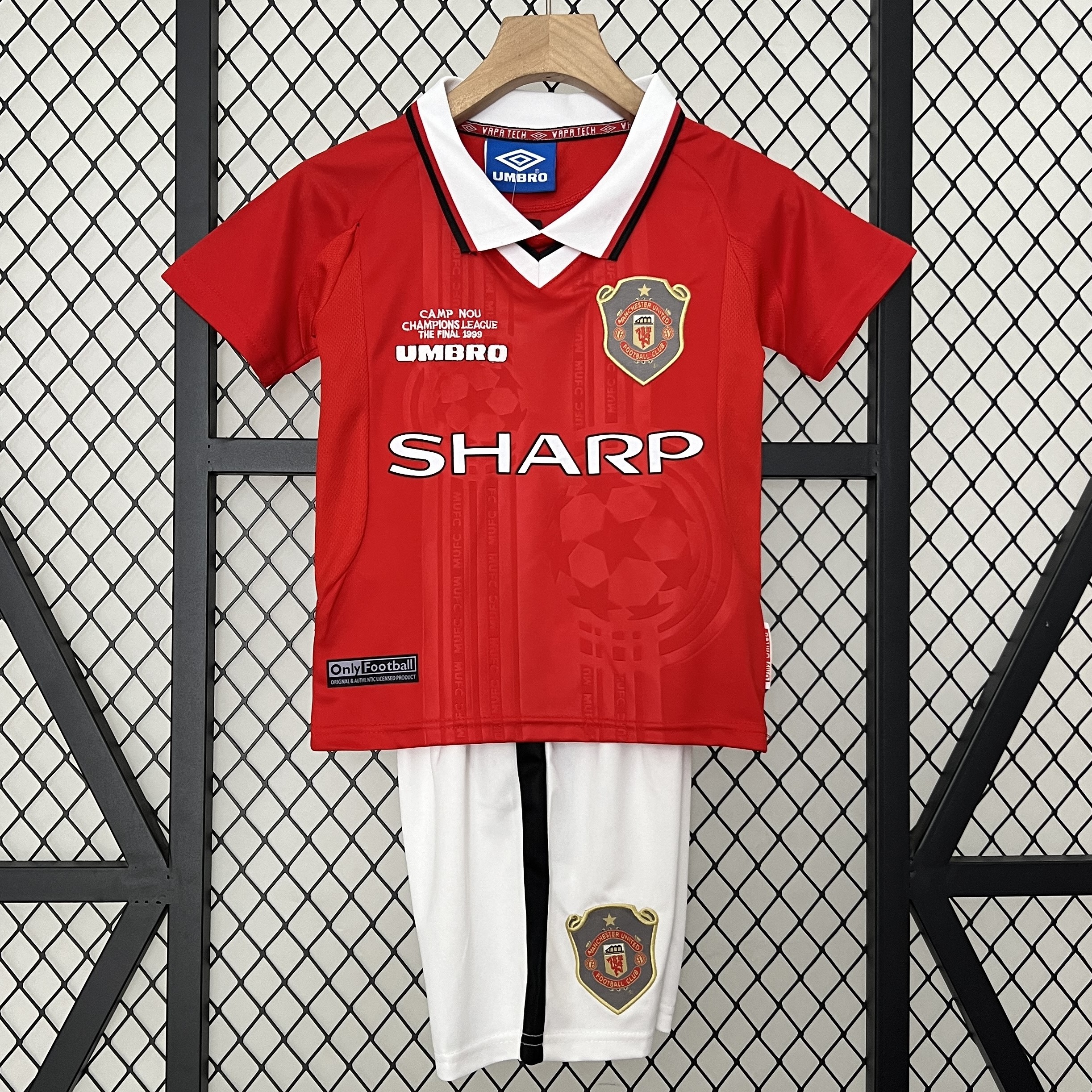 Kit Infantil Manchester United 1 Retrô Camisa e Short 1999 / 2000