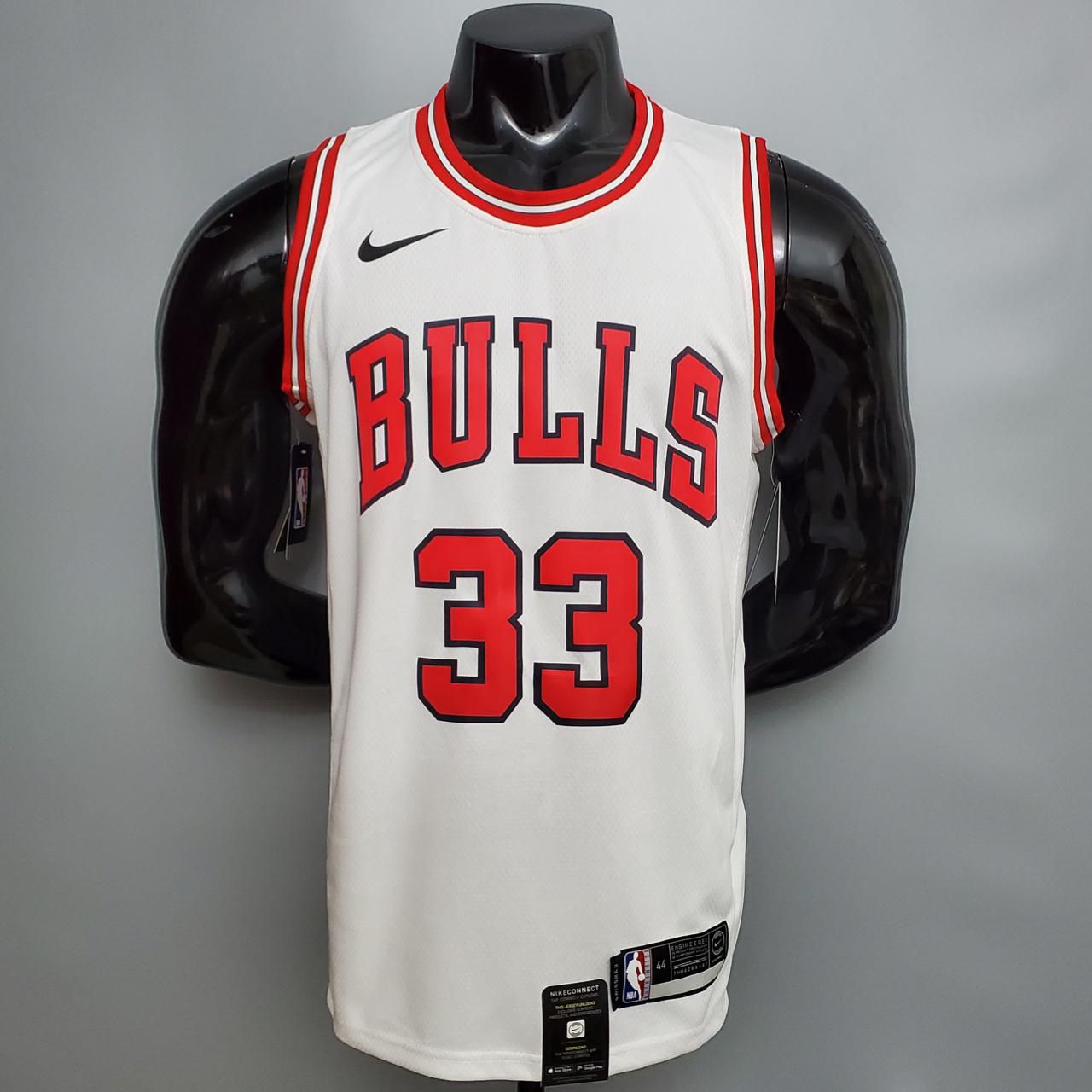 Regata Basquete NBA Chicago Bulls Pippen 33 Branca Edição Jogador Silk