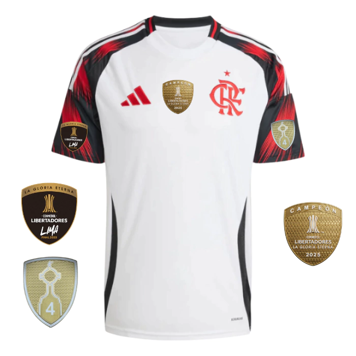 Nova Camisa Edição Torcedor Flamengo 2 Campeão libertadores Branca Tetra Patch Libertadores 2024 / 2025